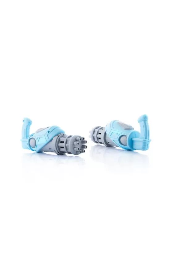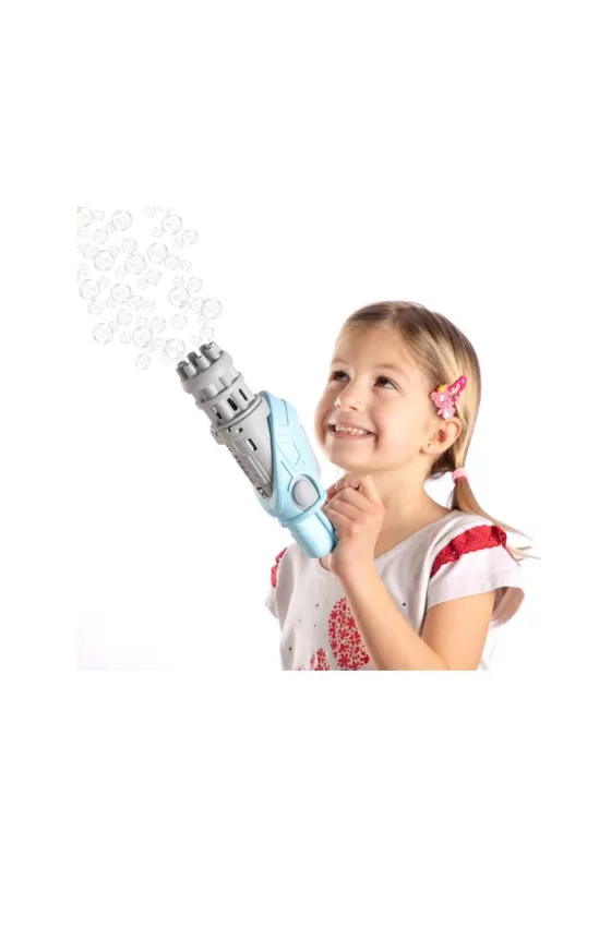 A fun bubble gun using soap to entertain the children when they are playing outside by launching a multitude of bubbles around them, creating fantastic and magical atmosphere. This is a game that has survived through the generations and which never goes out of fashion. Ideal for entertaining and livening up parties and celebrations, particularly those for children, although adults will nostalgically remember their childhood and won't be able to resist having a go. This original gun creates soap bubbles automatically and its 8 canons can launch up to 300 bubbles with each shot, creating a complete bubble invasion. It includes a tin for the soap and a tank for loading the soap , which enables you to carry everything you need easily to any location that you want to use it. It has an ergonomic handle, is battery operated and is very easy to use. You simply pour the soap contained in the tin into the tank, insert the end of the gun into the tank to wet the canons, and press the fire button, repeating the operation as required. This set does not include soap, but it does include instructions on how to make soap for bubbles. Specific soaps for bubbles can be used (not included) or you can make the soap yourself by following the instructions included.
