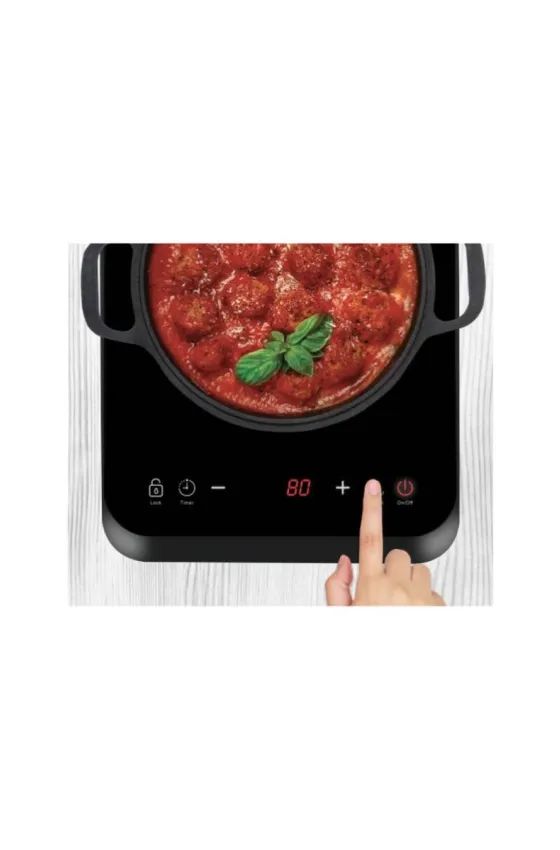 Digital panel with key for selecting between 10 powers and 10 temperatures from 60°C to 240°C. Programmable timer from 10 minutes to 4 hours. Practical and safe because it is activated only in the presence of the pan and the surface around the cooking area is cold to the touch. Equipped with a safety lock function, automatic switch-off and protection against overheating. Easy to clean.