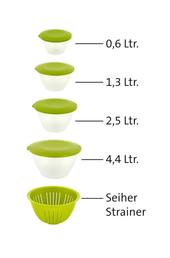 Westmark Bowl Set 4 bowls with lids + 1 strainer 9 pieces - Green