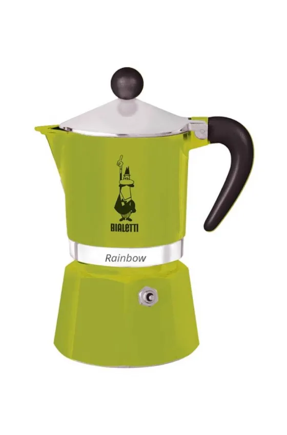 Add a splash of color to your kitchen with the Rainbow 3-Cup Espresso Maker in vibrant green.