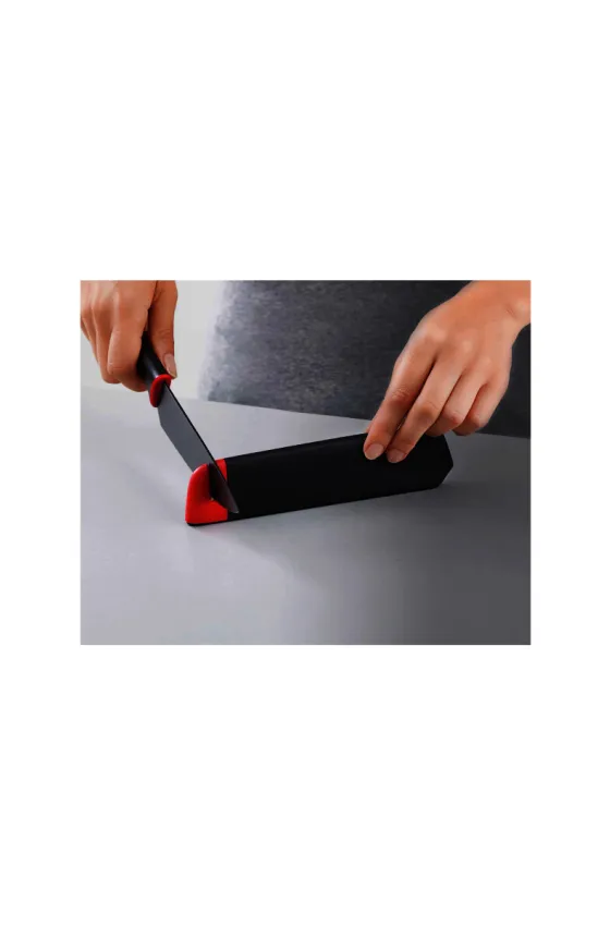 The Joseph Joseph Slice&Sharpen Set of 2 Knives provides a convenient way to keep your knives sharp. With integrated ceramic sharpeners in the protective sheaths, you can easily sharpen the blades right before use. This set includes a chef's knife and a paring knife, both with ergonomic handles for added comfort.