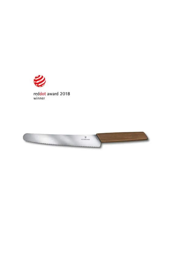 Choose this Victorinox Swiss Modern Bread and Pastry Knife for its exceptional sharpness and stunning walnut handle, elevating your baking and slicing with unmatched precision and charm.