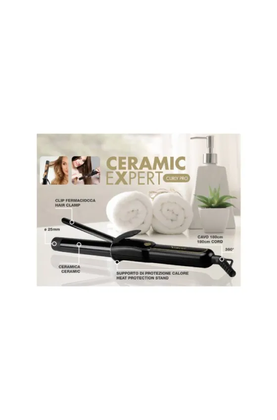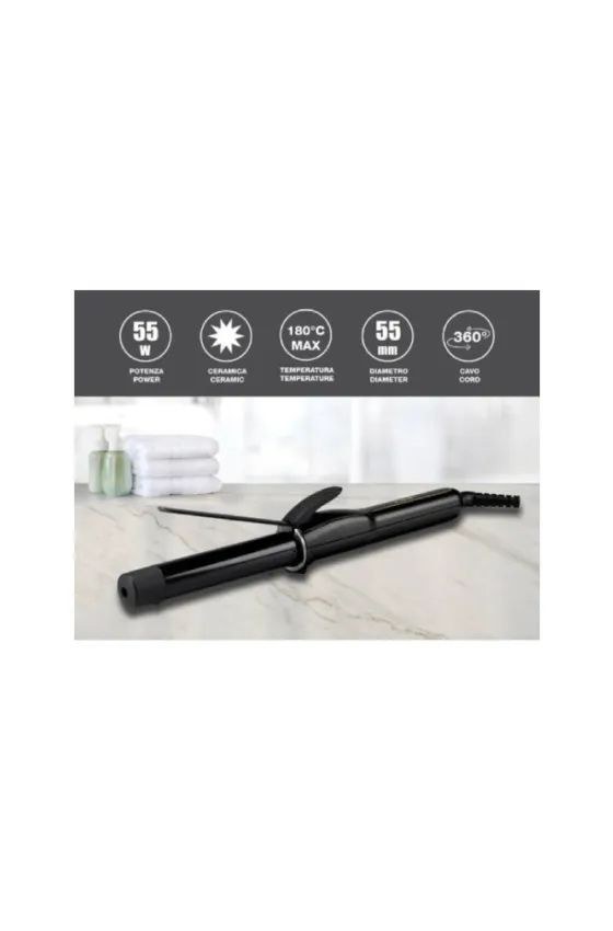 Hair curling iron with a modern design, perfect to create well defined waves and curls in no time: in just over 1 minute it will reach the max temperature of 180°C, thanks to its PTC heating elements, while the ceramic coating will keep the hair well protected and shiny.