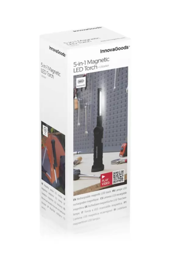 The Litooler InnovaGoods 5-in-1 rechargeable magnetic LED torch is extremely versatile thanks to its multipurpose and multi-position design. A rechargeable torch that offers endless LED lighting options in one lightweight and compact device. It provides LED light easily at any time and place, both indoors and outdoors, adapting to the needs of the user for their complete convenience.