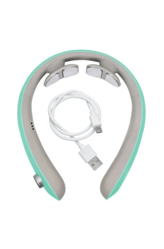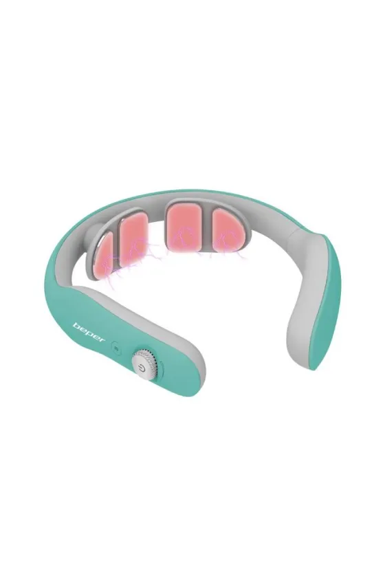 Electric massager specifically designed for neck area, thanks to EMS low frequency impulses technology and heating function.