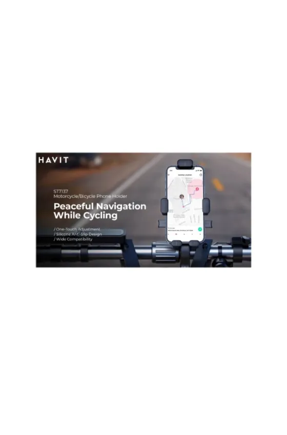 The Havit ST7137 Phone Holder is a versatile and durable mounting solution for motorcycles, bicycles, and cars. Designed to securely hold smartphones of various sizes, it accommodates devices with widths between 60mm and 90mm. Its adjustable tilt angle ensures optimal viewing while driving, making navigation and hands-free operation more convenient. Built with high-quality, durable materials, it provides a firm grip with an anti-slip design to keep your phone stable on bumpy roads.