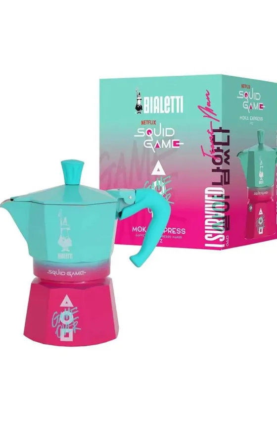 Iconic Stovetop Espresso Maker, suitable for all types of stove except induction, blue and pink color