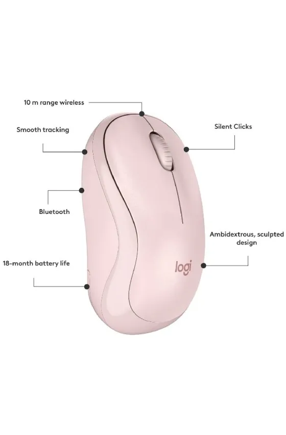 Plastic parts in M240 Silent computer mouse include certified post-consumer recycled plastic (48% for Graphite, and 37% Off-white and Rose (7))