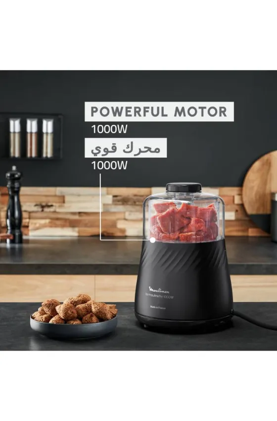 Made from 46% recycled plastics. Equipped with a powerful 1000 W motor and Powelix Blades Technology, this easy-to-use appliance delivers 4-in-1 chopping, mincing, grinding and mixing with perfect results every time.