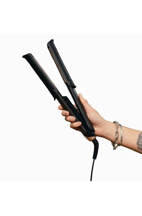 • 2-in-1 straightener and curling wand that creates soft curls, waves and smooth sleek styles