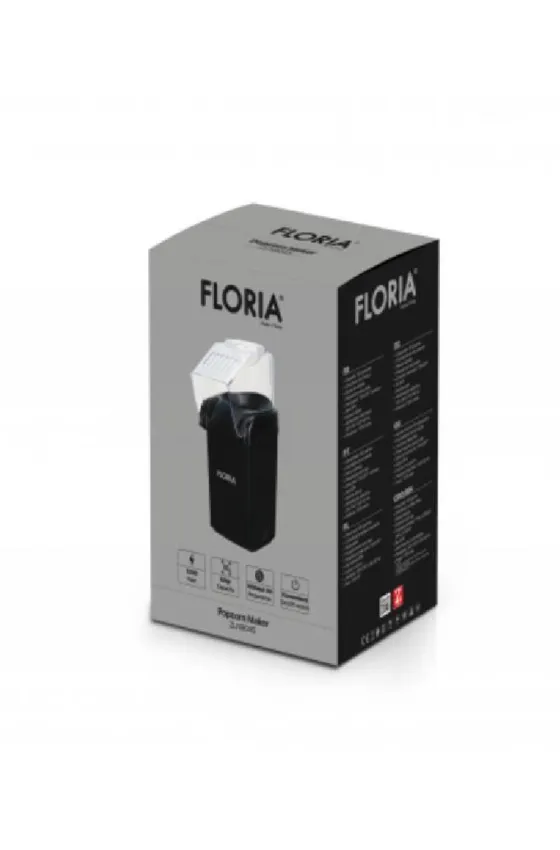 Zilan Floria Hot Air Popcorn Maker 1200W Power, BPA-Free, 60g Capacity, Oil-Free Popping – Black