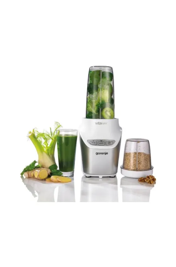 The Gorenje Nutri Power Blender, with a powerful 1000W motor, is designed to effortlessly blend, puree, and crush ingredients, making it perfect for smoothies, soups, and more.