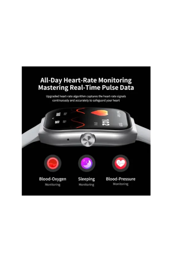 Experience the ultimate in smart technology with the Awei Smart Watch featuring a stunning 2.1-inch AMOLED display. Enjoy crystal-clear visuals and customize your watch face with cloud-based designs or personal photos. Designed for both fitness and everyday use, it supports multiple sports modes, including running, cycling, yoga & more, while accurately tracking your steps, calories and activity levels. With IP67 waterproof protection, it withstands daily splashes, sweat, and handwashing, making it a reliable companion for an active lifestyle. Equipped with essential health tracking features like heart rate monitoring, blood oxygen measurement and a female physiological cycle tracker, this smartwatch helps you stay in control of your well-being.