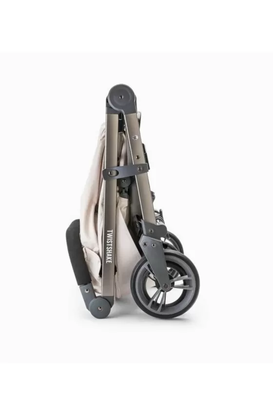 Experience the world with your baby with this stylish, trendy and functional stroller that takes you places with extra comfort. The Twistshake Tour gives your baby an exceptionally mobile, gentle ride with springs and swivel wheels that are puncture-free – ideal for an urban lifestyle. Take a break and enjoy the scenery with your baby simply by clicking on the brake, which is conveniently located between the rear wheels. With its smart, lightweight design, you can easily collapse the stroller without removing the seat and carry it with its smart handle, perfect for when you travel! The hood is stylish and easy for you to fold up and down in a single-handed grip. Despite its compact design, the seat has a wide back support that gives your baby extra space with plenty of room for warmer clothes during the winter months. The rear part also has a soft inner lining for a more comfy feel, a peep-hole so you can keep an eye on your baby when sleeping, and two positions to sit or lie down, as does the footrest. Carry your baby’s supplies or heavy shopping in the basket under the stroller, which can hold about 3 kg. The stroller has integrated buckles for your baby’s safety. You can choose between the colours black, grey and beige.