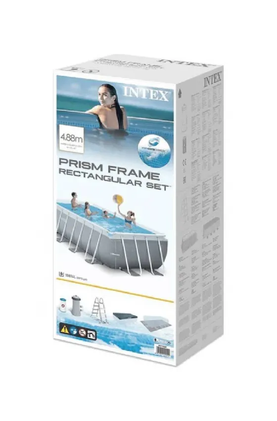 Our Intex 26784 rectangular swimming pool is made of rust and corrosion-resistant treated steel. Thanks to the three-layer PVC, the structure is reinforced: an inner and outer layer in thick and resistant PVC and an intermediate layer in polyester. Easy to assemble and disassemble and with a solid structure. Measurements: 300 X 175 X 80 cm. Equipped with accessories such as filter pump and double ladder.