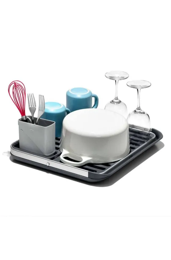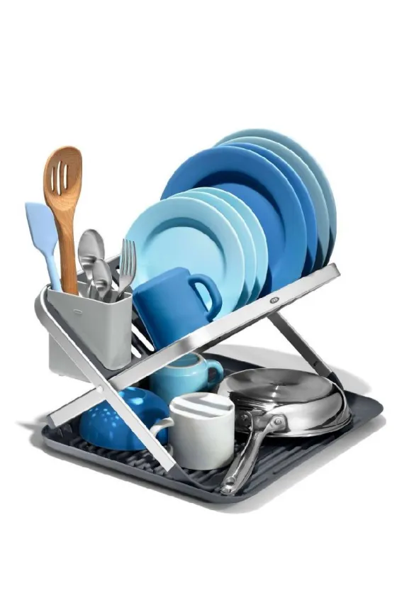 The OXO Good Grips Aluminum Fold Flat Dish Rack is the flexible solution for doing dishes by hand.