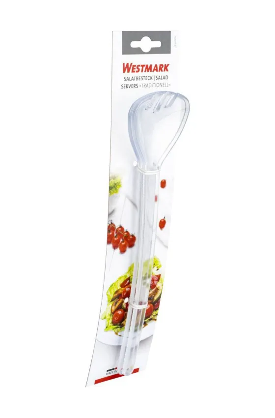 The 2-piece Westmark Salad Servers offer a classic design for easy salad preparation and serving. Made from high-quality, BPA-free materials, they ensure durability and convenience. Dishwasher-safe for effortless cleaning, these servers are a reliable addition to any kitchen.