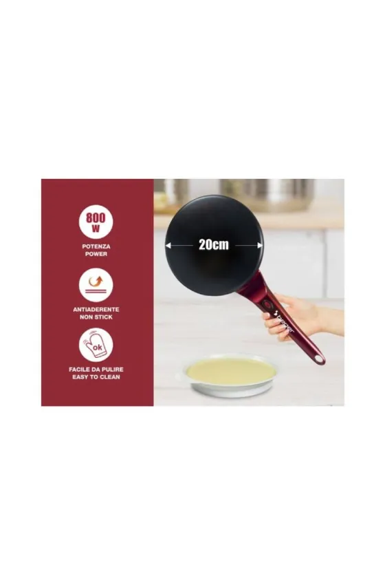 Easy to use and fast cooking crepe maker perfect for preparing thin crepes, tortillas and pancakes without the risk of burning them.